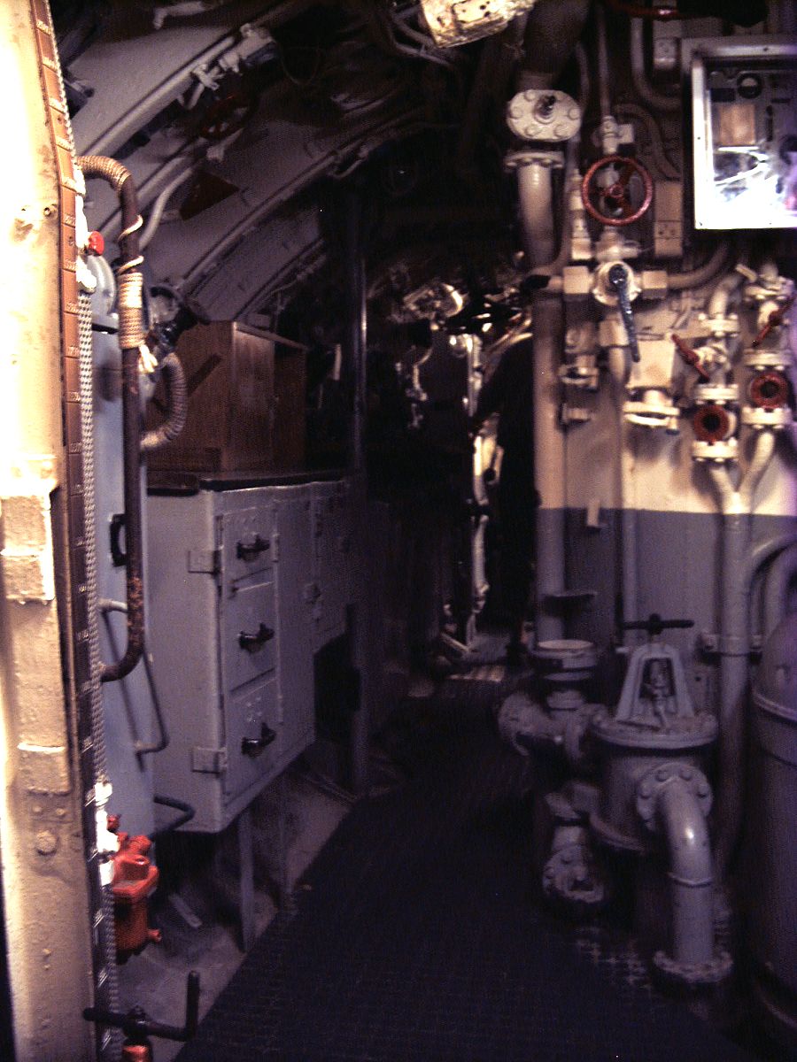 Nach Passieren des hinteren Kugelschotts befindet man sich auf der Backbordseite der Zentrale.