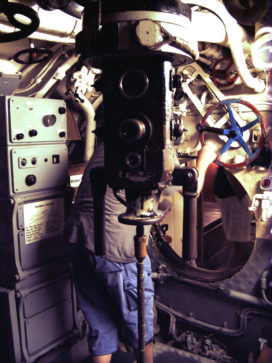 In der Zentrale befand sich das Luftzielsehrohr, das aufgrund seiner lichtstärkeren Optik dazu verwendet wurde, vor dem Auftauchen den Himmel nach Flugzeugen abzusuchen. Das zweite Periskop, das Angriffssehrohr, wurde aus dem (nicht zugänglichen) Turm bedient. |