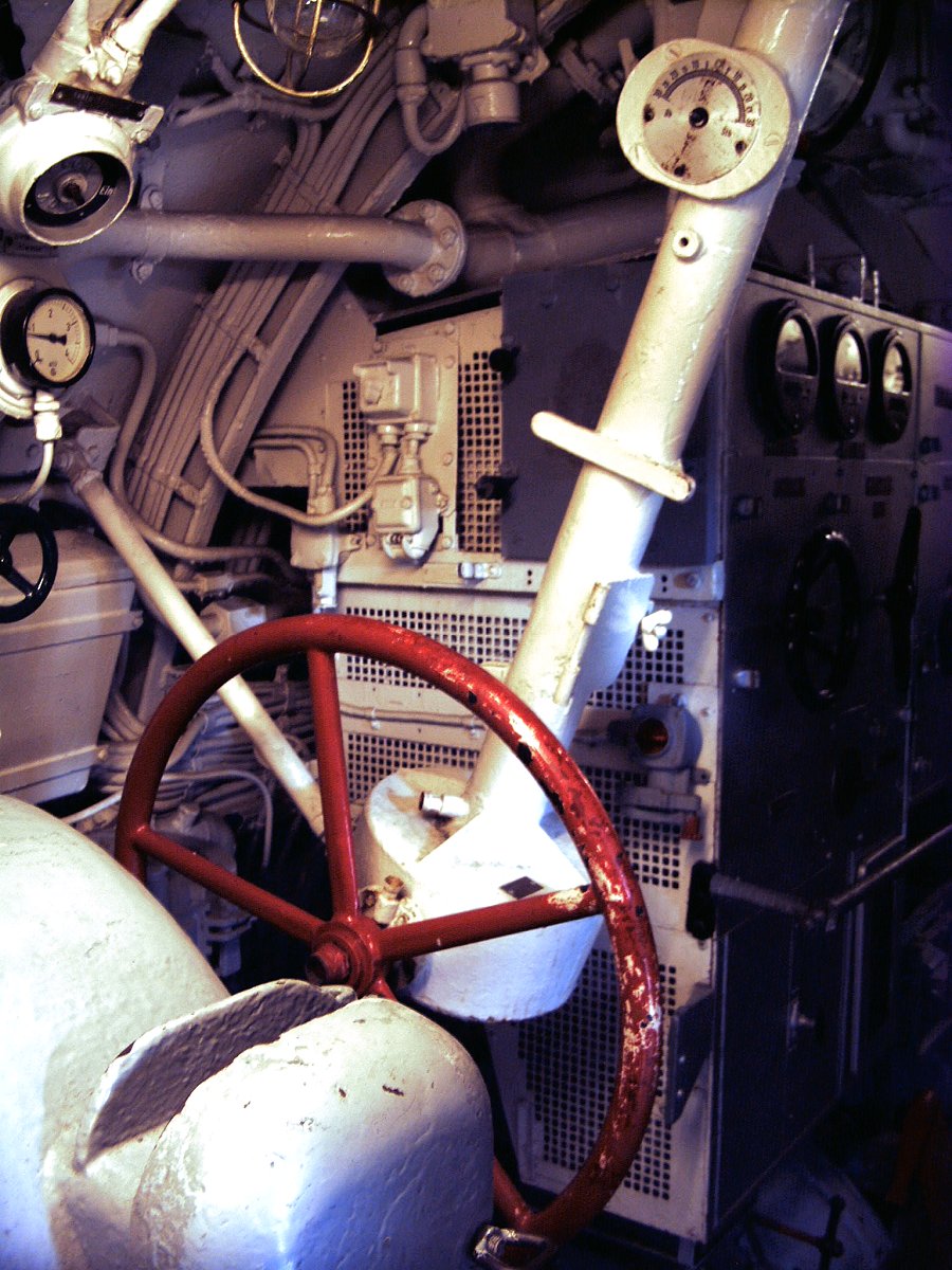 Auf der Backbordseite ist im Hecktorpedoraum ein Notsteuerstand untergebracht, mit dem das Hauptruder notfalls von hier aus bedient werden konnte.