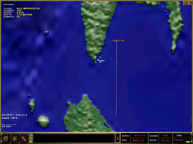Zum Glück verhält sich Ihr Gegner nicht ganz so vorsichtig: Sie hören kurz nach Missionsbeginn die typischen "Ping"-Laute eines aktiven Sonars! Also auf zur Sonarstation (F2-Taste drücken).