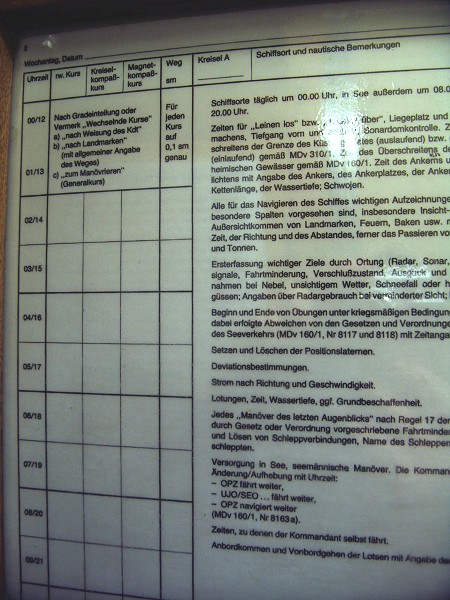 Auszug aus dem Logbuch (linke Seite)