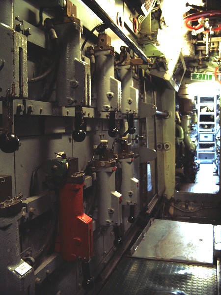 Hauptschalttafel der E-Maschine (Steuerbord) mit Blick auf das Schott zum Dieselraum.