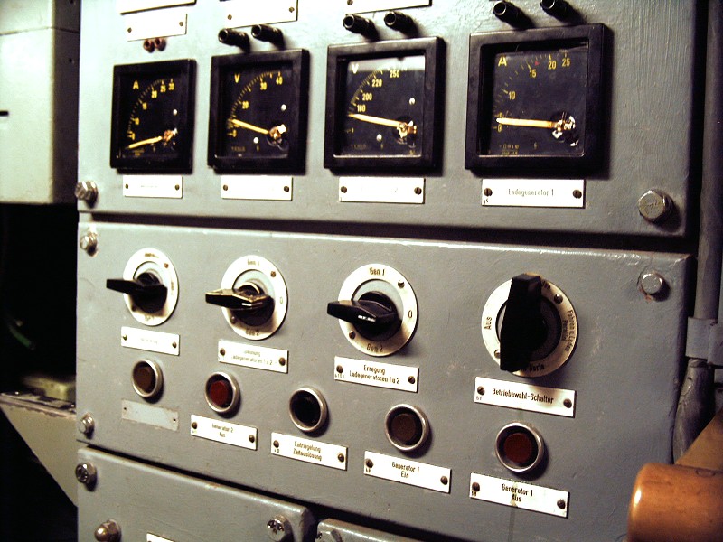 Steuerstand mit verschiedenen Kontrollanzeigen.