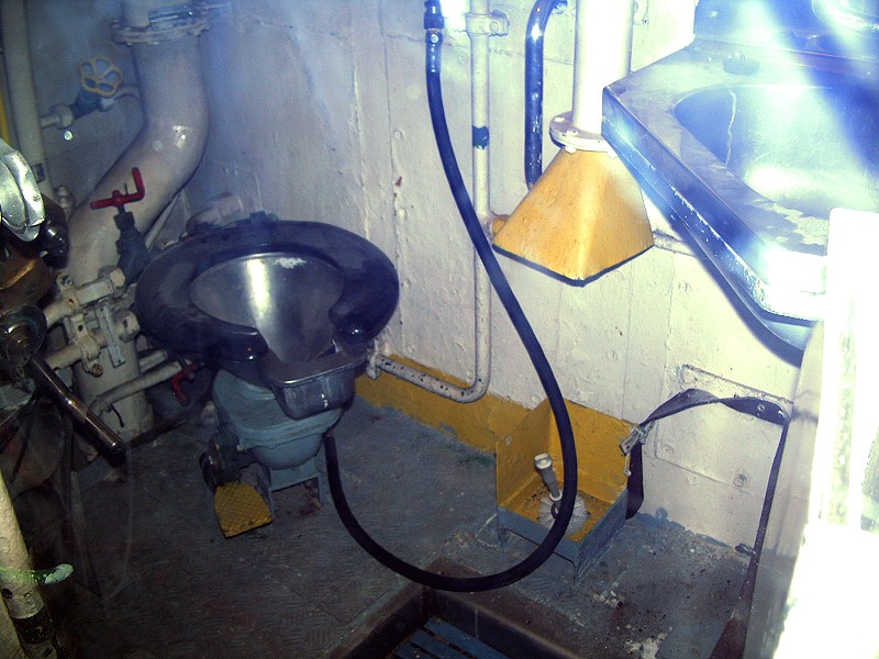 Neben dem WC und einem kleinen Waschbecken (die beide für die 22-köpfige Mannschaft ausreichen mussten und an Bord schlicht "Bongo" genannt wurden), befand sich bei U-9 und U-10 die Bold-Schleuse auf der Backbordseite neben dem WC (am linken Bildrand zum Teil noch zu erkennen). Über sie konnten mit Druckluft Signalkörper ausgestoßen werden. Da bei der Klasse 205/205mod keine Täuschkörper ausgestoßen werden sollten, hatte man den urspünglichen Plan, die Bold-Schleuse mit Druckwasser zu betreiben, wieder aufgegeben. Im Falle von Druckluftverlust konnten die Signalkörper auch mit Hilfe einer Ausstoßstange mechanisch aus der Schleuse befördert werden.